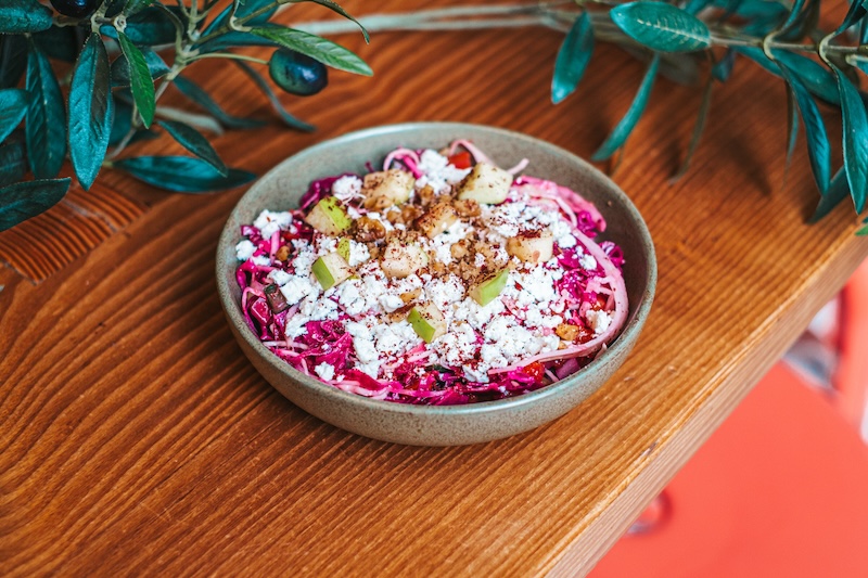 rouge & blanc, noix, feta, vinaigrette miel-citron, pomme verte & butternut