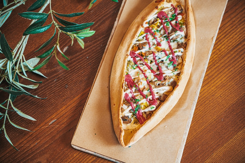 Ursprünglich aus der Türkei, sind Pide ovale und längliche Fladenbrote, die im Ofen gebacken werden, und in der Regel mit Fleisch, Gemüse oder Käse belegt sind.