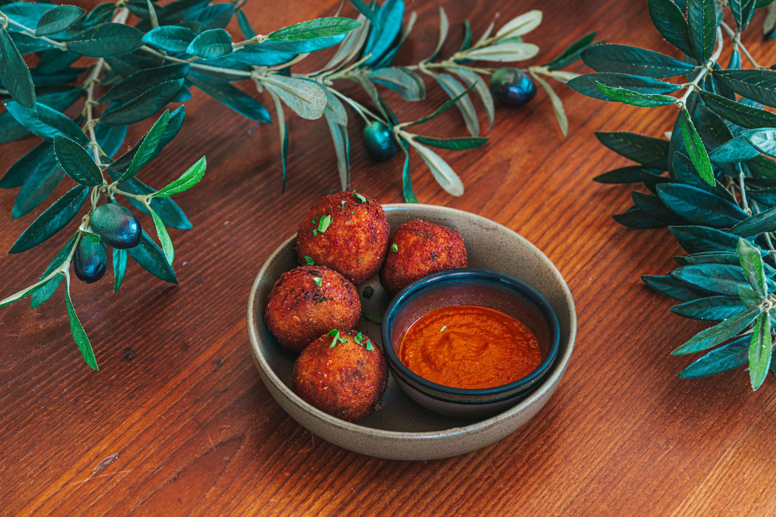 Croqueta de batata dulce, perejil, cebolla y melaza de granada. +3,90 €